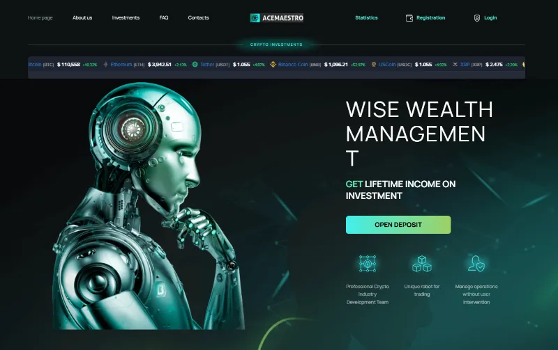 Ace Maestro is not licensed by any top-tier regulator. Investing with companies not authorized by your local regulator is risky. In case of a dispute, you may not be able to seek assistance or legal recourse from your local authorities, leaving you with limited options.