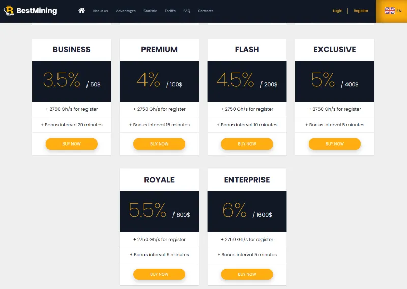 The platform often advertises cloud mining or mining contracts that allow you to earn from cryptocurrency mining remotely. However, there is no actual mining operation behind these promises. Instead, the website displays fabricated statistics and profit reports to lure you in.
