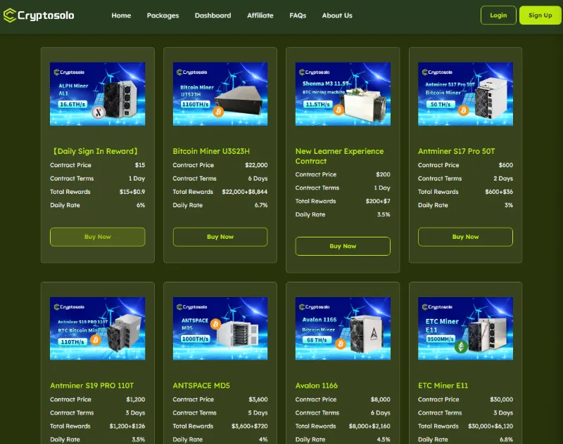 Cryptosolo appears to be a crypto mining scam that tricks investors by promising high profits from cryptocurrency mining. In these scams, the platform claims to offer lucrative returns from mining operations, but in reality, no real mining takes place.