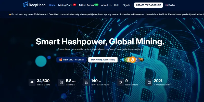 DeepHash appears to be a crypto mining scam that tricks investors by promising high profits from cryptocurrency mining. In these scams, the platform claims to offer lucrative returns from mining operations, but in reality, no real mining takes place.