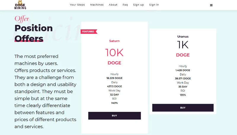 DogeMining.io is a high-yield investment program promising unrealistic profits.