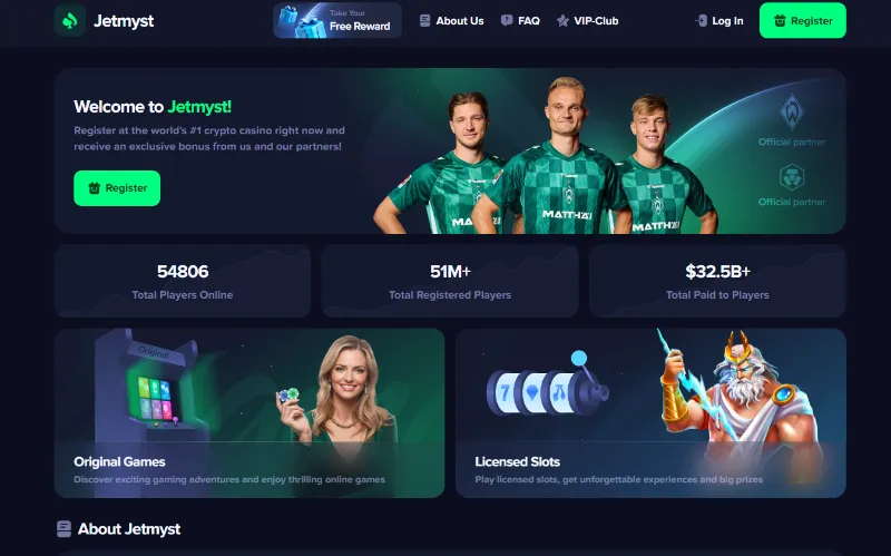 Jetmyst (jetmyst.com) operates as part of a broader crypto casino scam network, sharing an identical website structure with many other fraudulent platforms.