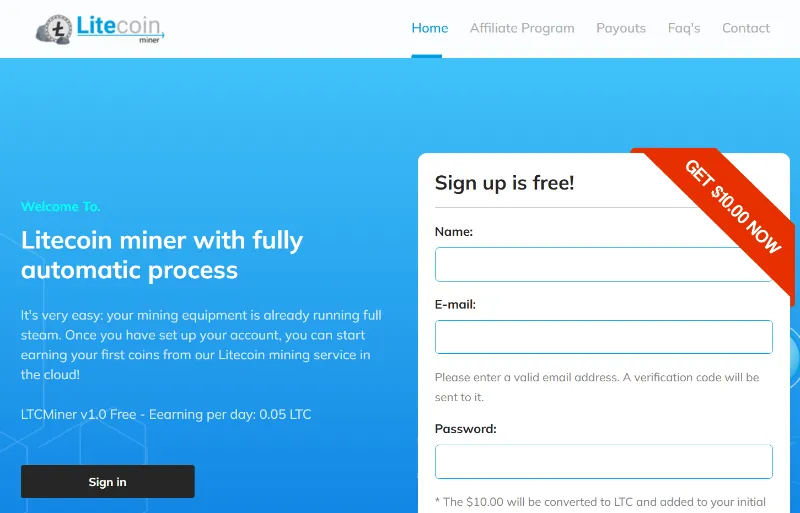 LTC Miner appears to be a crypto mining scam that tricks investors by promising high profits from cryptocurrency mining. In these scams, the platform claims to offer lucrative returns from mining operations, but in reality, no real mining takes place.
