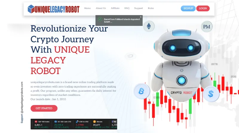 Unique Legacy Robot is a high-yield investment program promising unrealistic profits.